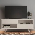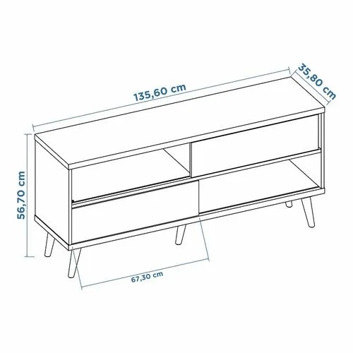 Estilo retrô com pés inclinados e portas deslizantes. Sua estrutura resistente de 15 e 25mm e tampo robusto de 25mm garantem durabilidade e beleza, perfeita para ambientes modernos e acolhedores.