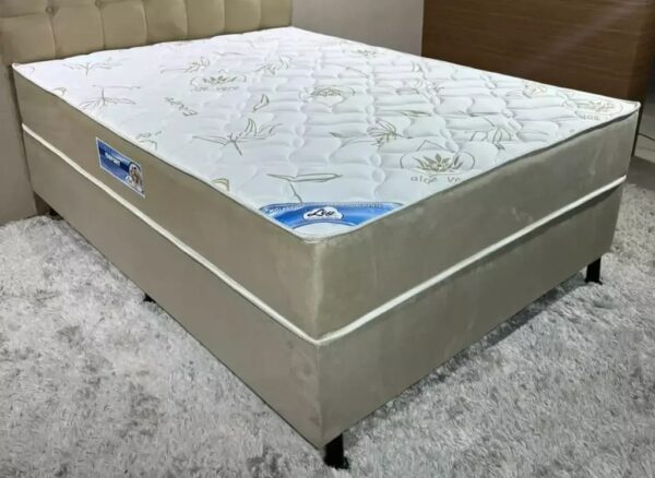 FAIXA COM TECIDO SUED PRETO, ALÉM DE COMBINAR COM AS CORES DO COLCHÃO, DÃO UM GRANDE REQUINTE AO CONJUNTO BOX.