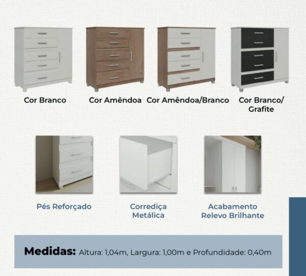 COMODA 5 GAVETAS ZAQUEU BRANCO