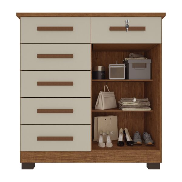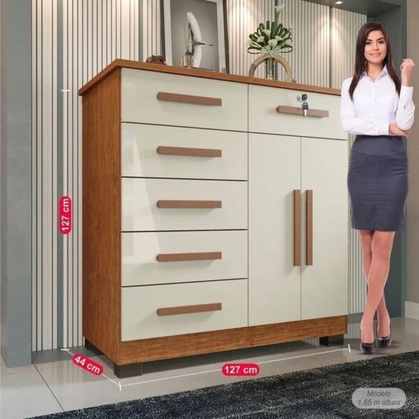A Cômoda Milão Prime combina design moderno e funcionalidade, oferecendo ótimo espaço interno para organizar roupas e acessórios com praticidade. Com acabamento elegante e estrutura resistente, é ideal para quem busca beleza, durabilidade e organização no dia a dia do quarto.