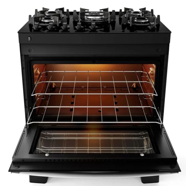 Seu design elegante na cor preta combina com diversos estilos de cozinha, enquanto o forno espaçoso proporciona mais versatilidade para assados e receitas completas. Uma excelente opção para quem deseja eficiência e beleza em um único produto.