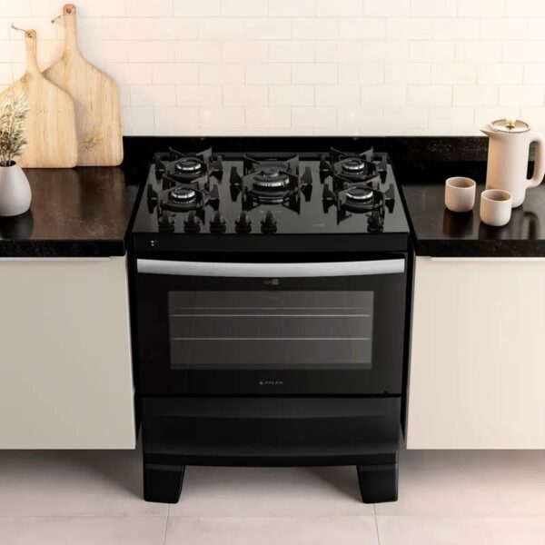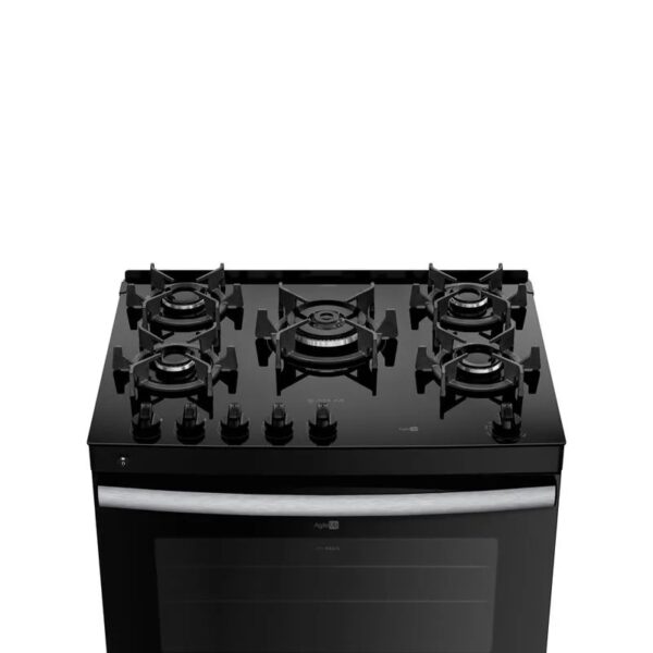 O Fogão a Gás 5 Bocas Agile Glass Preto é perfeito para quem busca desempenho, praticidade e um visual moderno na cozinha. Com mesa em vidro temperado que facilita a limpeza e valoriza o ambiente, ele oferece maior espaço para preparo das refeições graças aos seus 5 queimadores, ideais para quem precisa de agilidade no dia a dia.