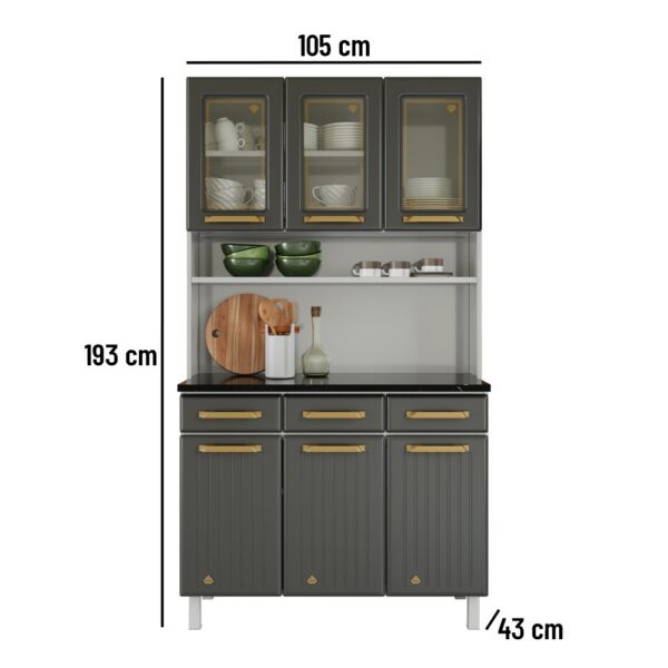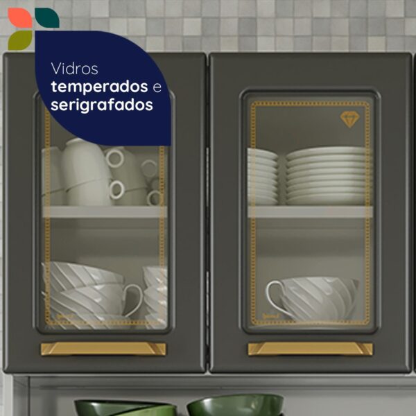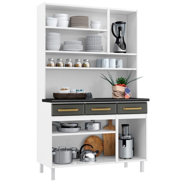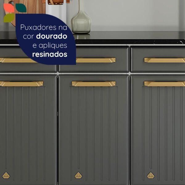 Funcional e elegante, o Kit Triplo Diamante New oferece amplo espaço para organização, com 3 gavetas e 3 portas com detalhe em vidro que valorizam o design. Acabamento em cinza total, ideal para ambientes modernos, unindo praticidade, resistência e sofisticação no dia a dia.